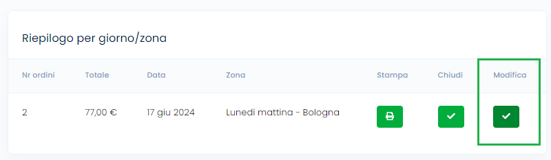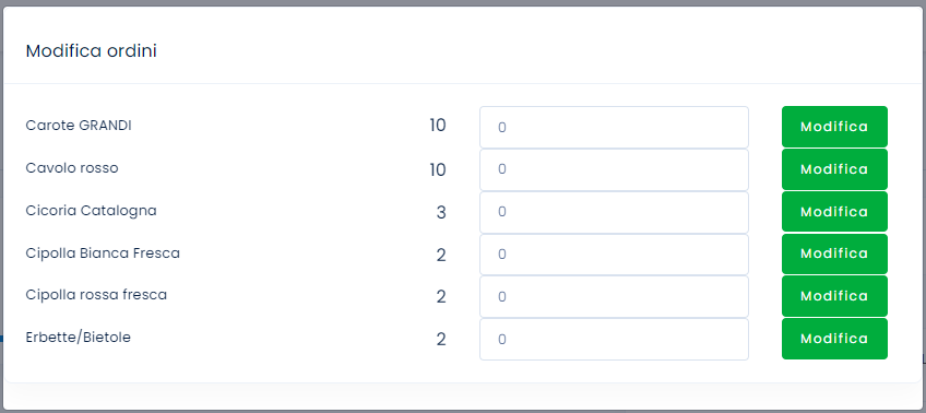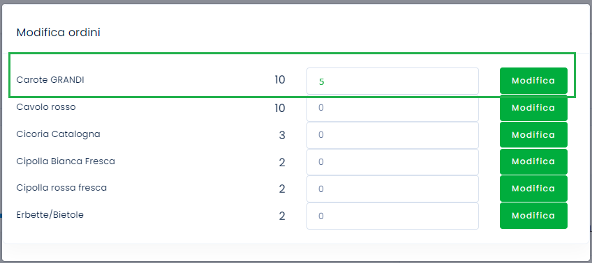 Sarà quindi possibile modificare le disponibilità dei singoli prodotti per quel gruppo di ordini tramite il pulsante "Modifica"
